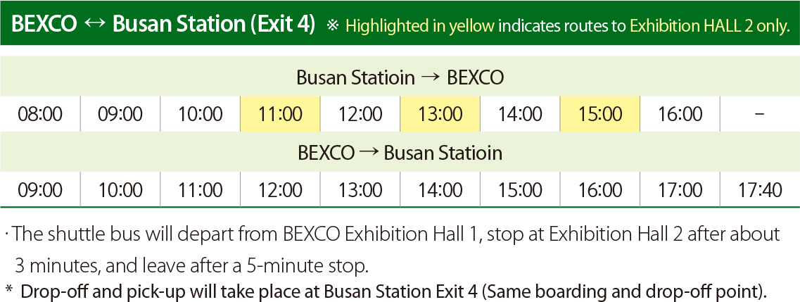 BEXCO Shuttle Bus Boarding/Alighting | Busan Station Exit 4 Shuttle Bus Stop | |