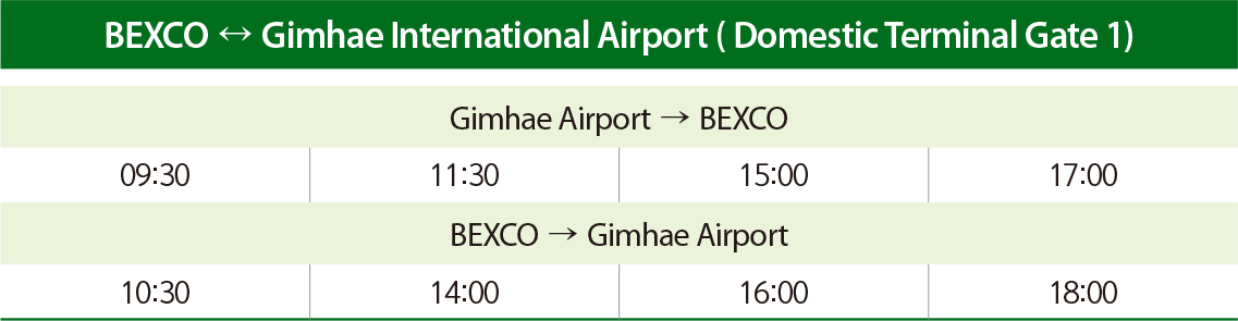 BEXCO Shuttle Bus Boarding/Alighting | Gimhae Airport Domestic Terminal Exit 1 Shuttle Bus Stop | |