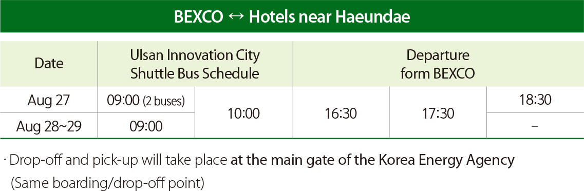 Korea Energy Agency Main Gate Shuttle Bus Stop | BEXCO Hall 1 Shuttle Bus Stop |